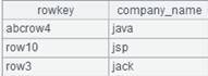 =hbase_scan(A1,"emp";filter:hbase_filter("SingleColumnValueFilter","company","name","=",A9)) |