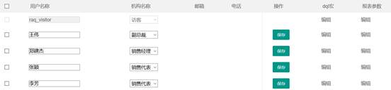 用户管理可以设置允许访问应用的用户名和密码、给用户设置对应的机构、DQL宏、参数来控制用户权限。机构与通常所说的用户组相同,可将访问应用的用户信息,划分到不同的机构组。建立机构组的好处是可以为组里的所有用户统一定义访问报表的权限、设立统一的参数初始值,以控制他们访问报表时的数据。