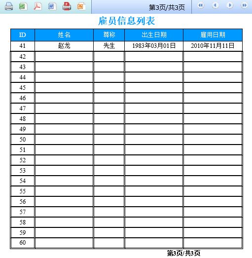 每页显示20条记录,数据集总记录数为41条时,最后一页预览效果如下: