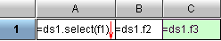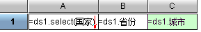 2、例如:ds1.select(name,id == value()),这样根据当前单元格中的值从数据集ds1中找到与之相等的id,根据id,显示对应name字段的值。
